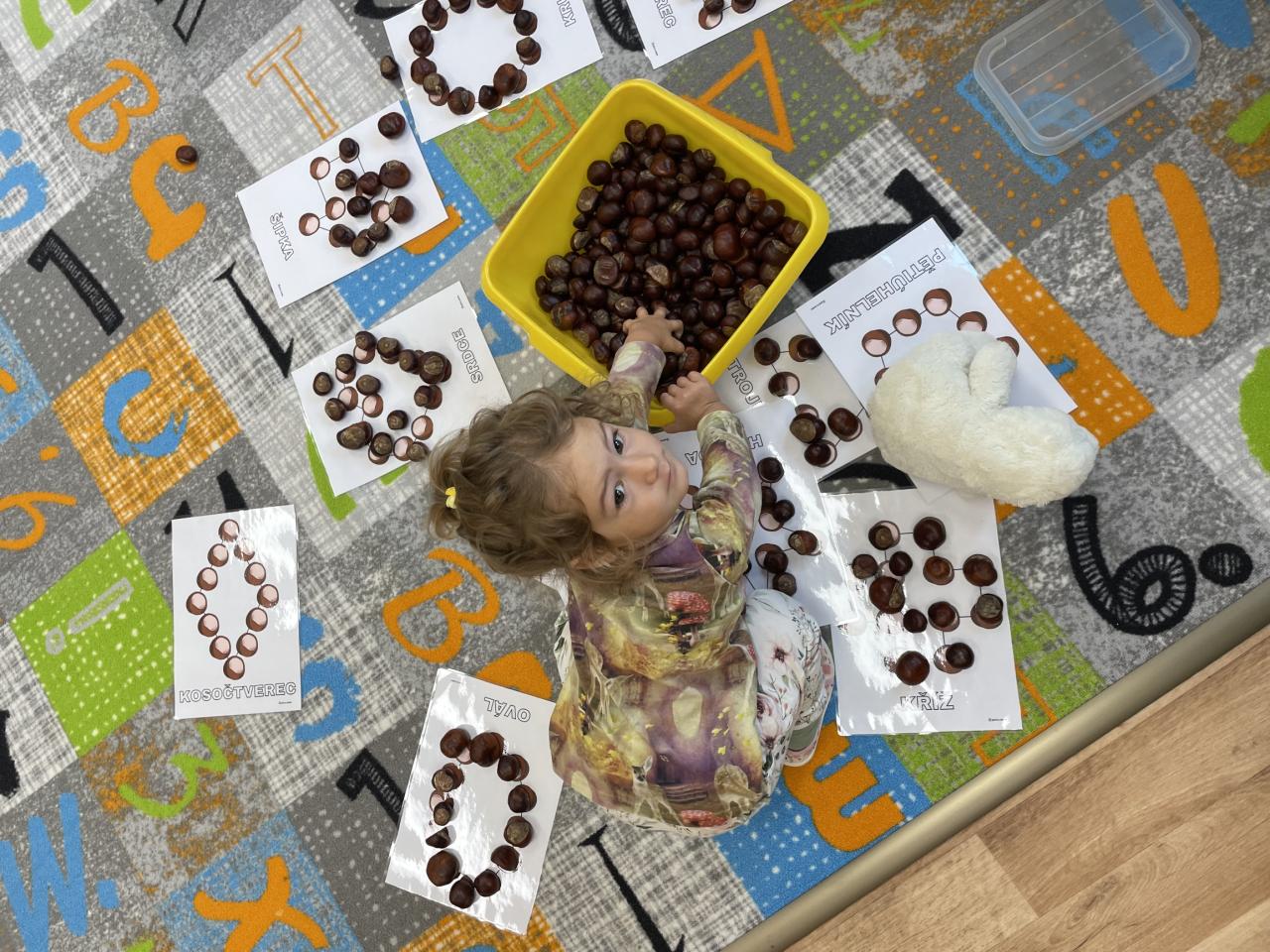 Stezka skřítka Podzimníčka, hravé kaštánky, a tvorba z lístečků:)