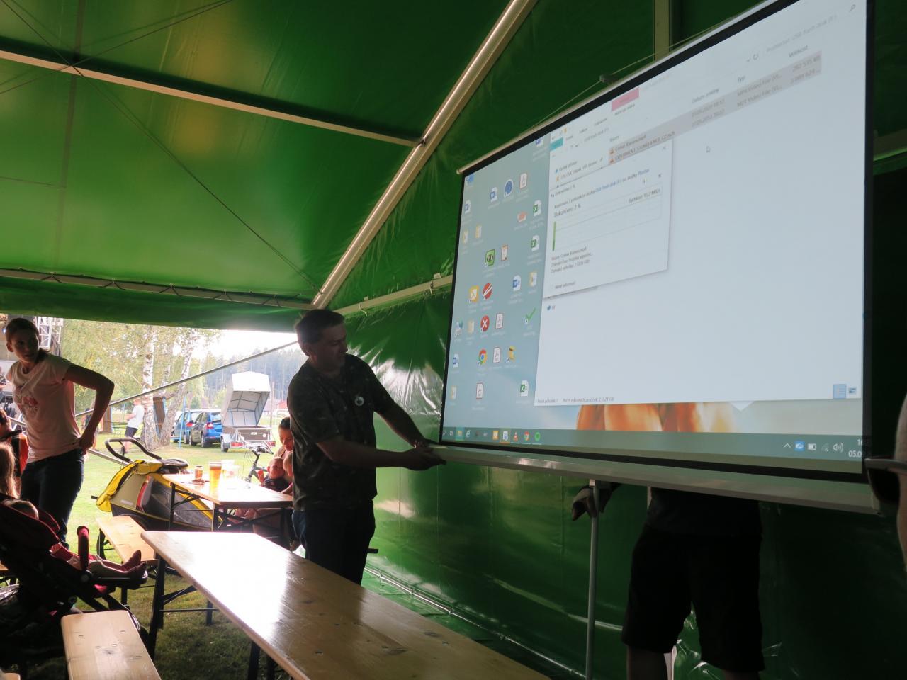 Čertův kámen Ing. Pavel Pavel znovu usadil do čepu a je možné s ním znovu pohybovat. Během usazování si děti mohly nakreslit čerta, rodiče shlédnout výstavu. Následně ve stanu u Sauny pokračoval doprovodný program: film o Ing. Pavlovi Pavlovi, film z předchozího usazování a hudební produkce.